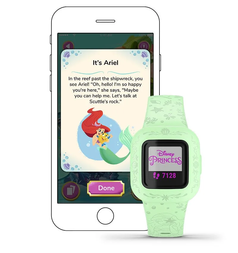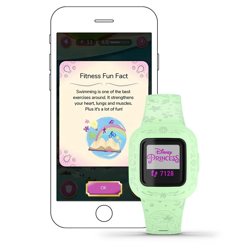 Активный образ жизни полезен для каждой принцессы и каждого ребёнка. Приложение Garmin Jr.™ поощряет детей двигаться с помощью интересных фактов.